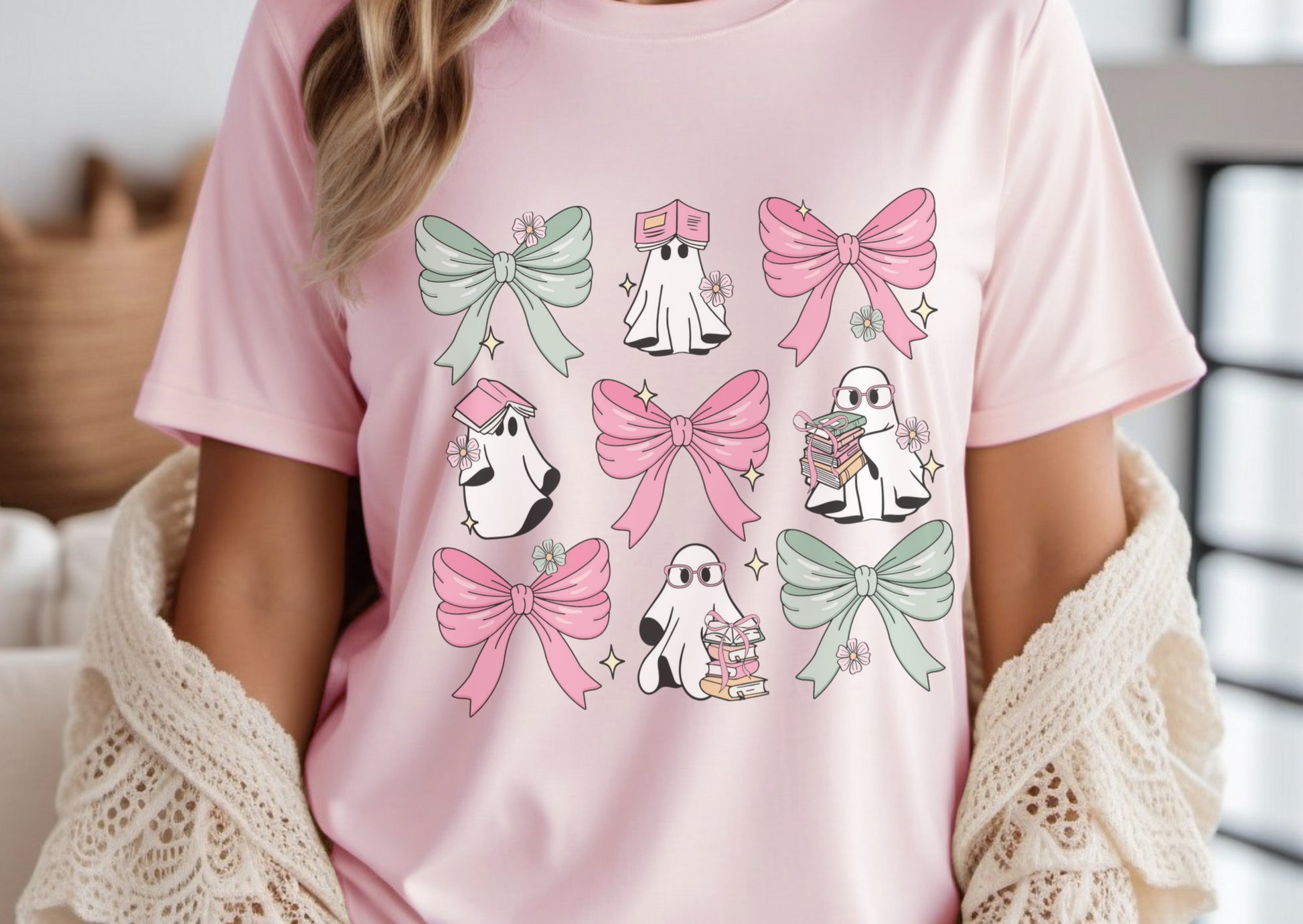 Playful, pretty, and a little bit spooky—our “Ghostly Readers & Bows” T-Shirt blends two irresistible trends: dainty coquette bows and the whimsical charm of book-reading ghosts. Perfect for the reader who loves her stories with a side of style, this soft, lightweight tee is as comfortable as it is adorable.