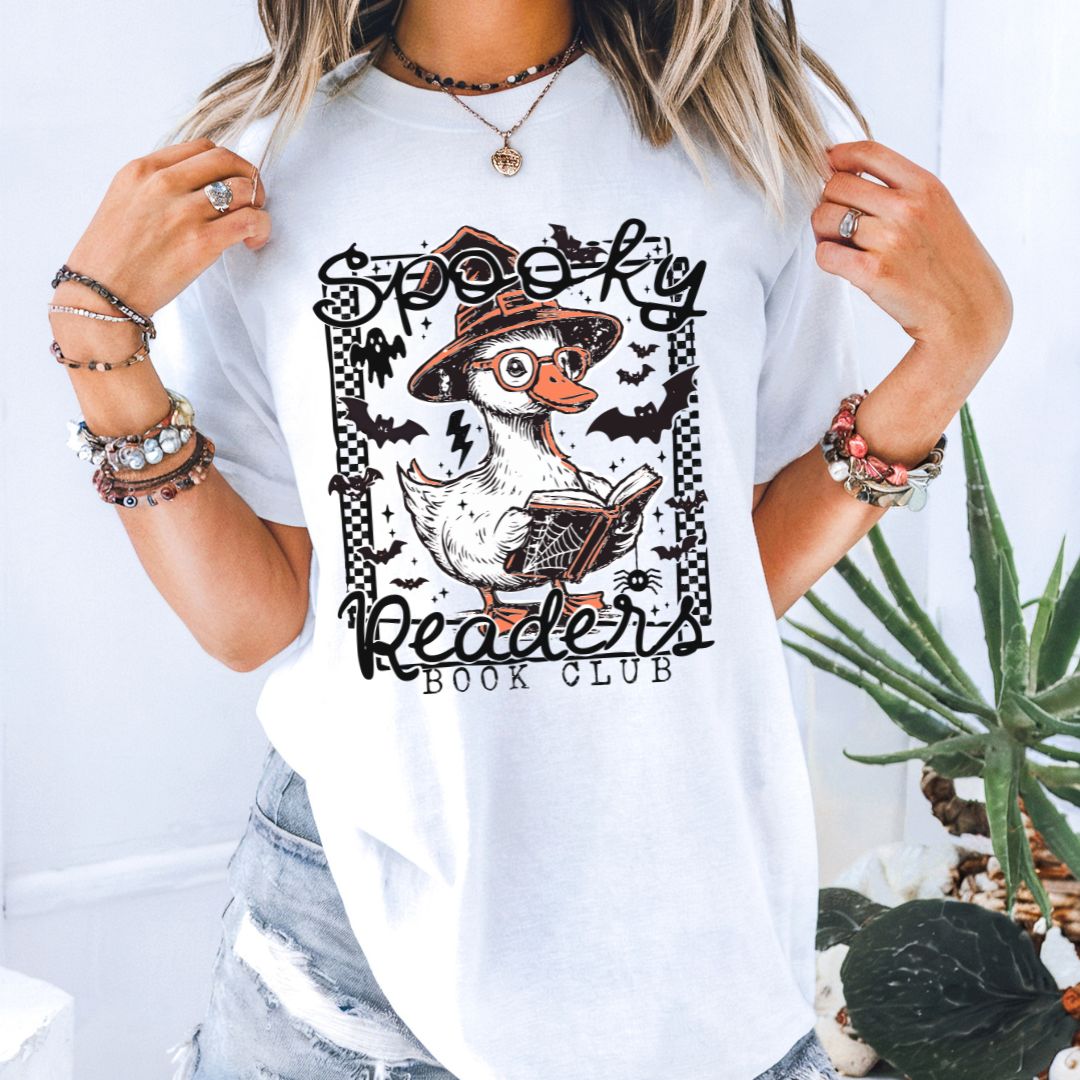 “Spooky Reader Book Club” is the perfect blend of bookish humor, seasonal charm, and a nod to the silly goose trend. Lighthearted and cozy, it will make you smile every time you slip it on.